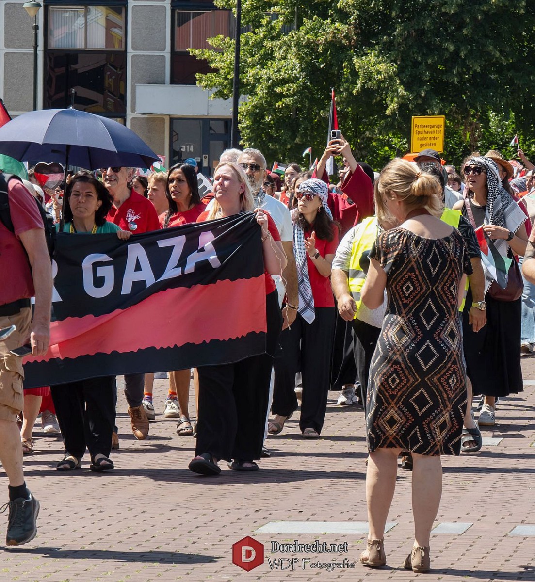 DORDRECHT - Naar schatting meer dan drieduizend mensen trokken zondagmiddag in de Dordtse binnenstad een rode lijn tegen de schendingen van de mensen rechten in Gaza.
