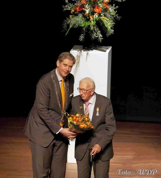 Hij stond naast burgemeester Wouter Kolff op het podium van schouwburg Kunstmin. De gemeente gaf toen voor zijn onderscheiding de volgende motivatie: